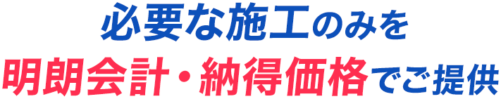 必要な施工のみをご提供し明朗会計・どこよりも納得価格で修理をいたします。